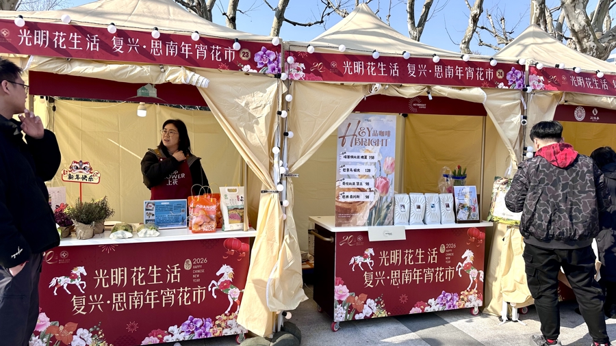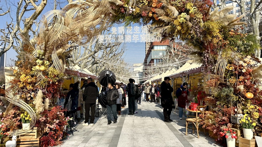此次年宵花市设立“复兴公园+思南公馆”两大会场,市民可以在花香和美食中邂逅年味。市集以“光明筑年味,花香润新春”为核心,划分为花植区、食品区、体验区、打卡区四大板块。