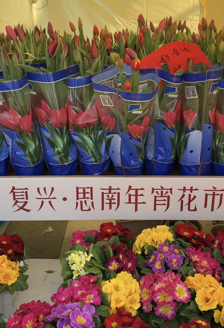 从年花到年货,从买花到采摘,还有上海今年最早的郁金香花田……今天上午,为期10天的“光明花生活复兴·思南年宵花市”在复兴公园和思南公馆同步开幕,为市民带来“从餐桌到庭院”的花香与年味。