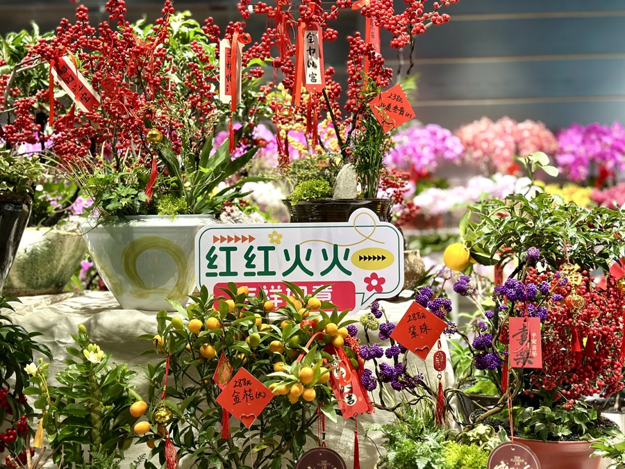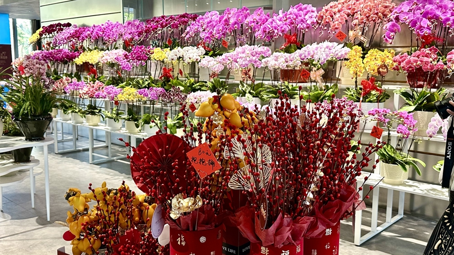 新民晚报记者在现场看到,花市中不仅有传统年宵花品种,还有“懒人福音”和高端花卉。此外,光明集团旗下的年货好物也极具性价比,市民纷纷前来扫货,花香串联烟火气带来了浓浓的年味。